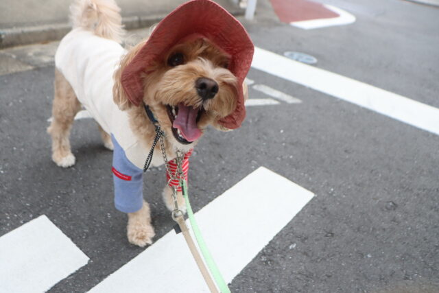 アリアちゃんは帽子を被ってお散歩練習へ!