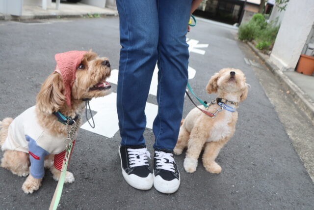 ハイちゃんとアンディくんは今日も先輩犬と少しだけご挨拶(^^♪
