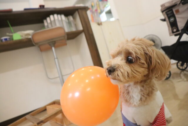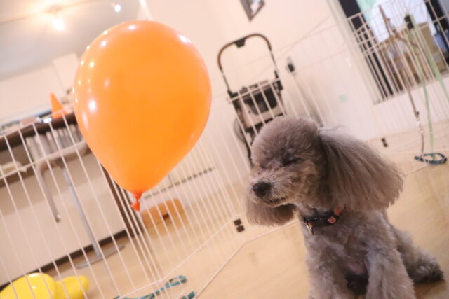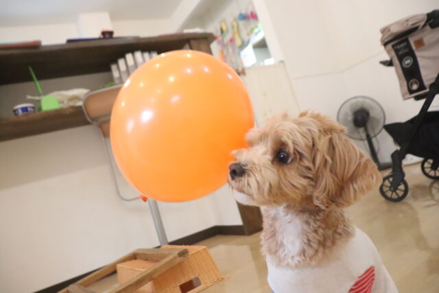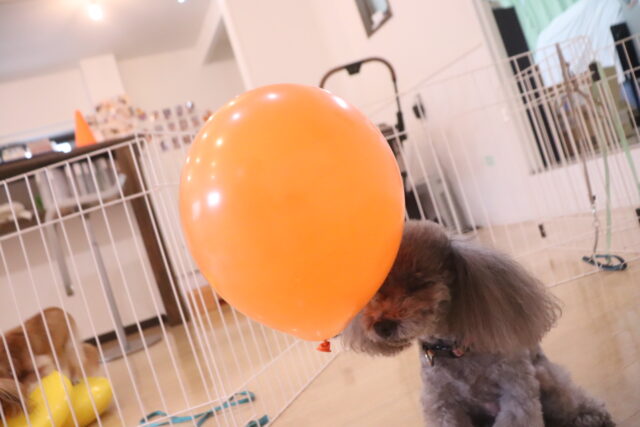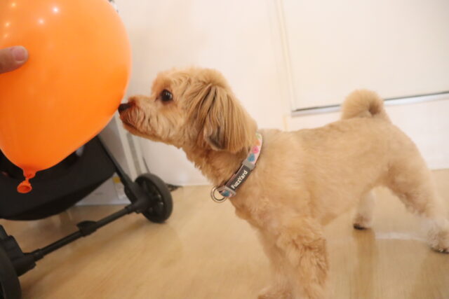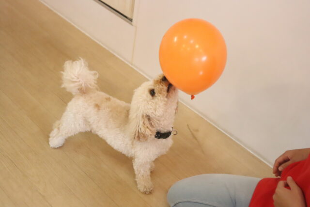 スタッフが持っている風船には上手に鼻タッチが出来ていますが…