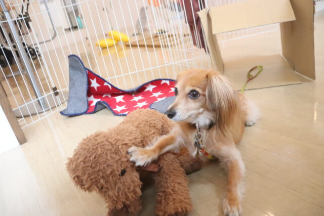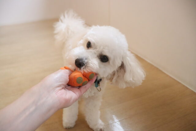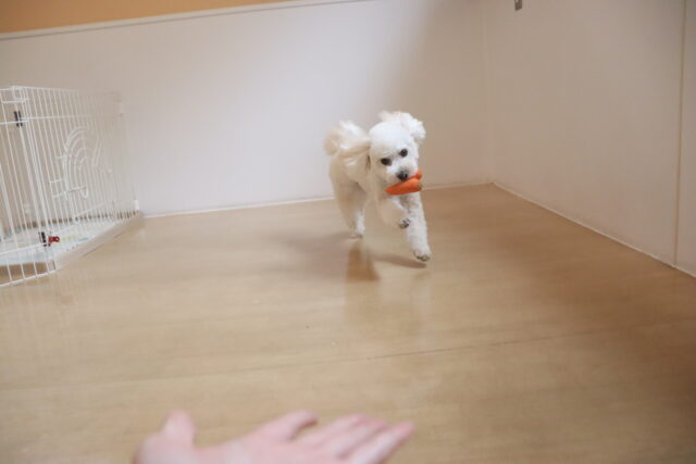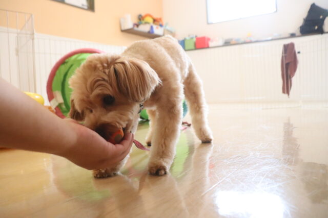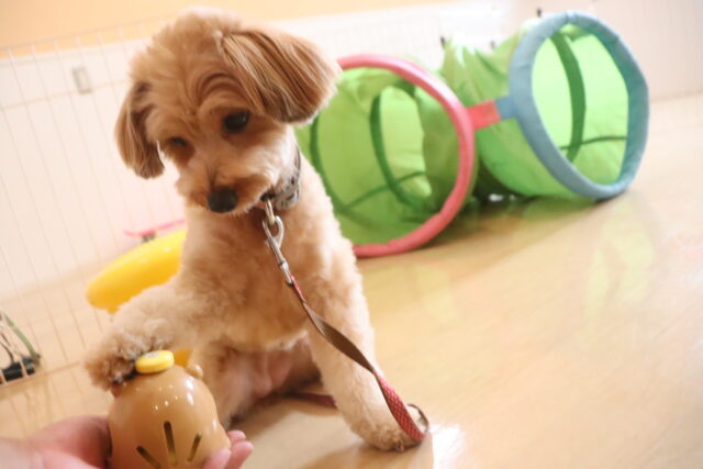 スタッフの”ちょうだい”の声掛けでスムーズにオモチャを口から放すことが出来たね!