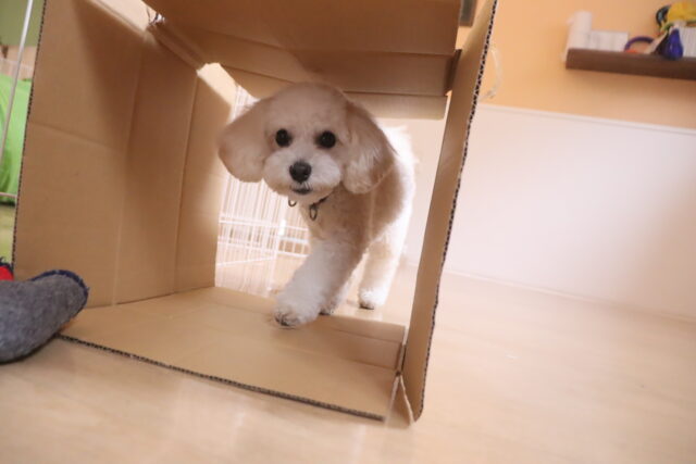 陽向くん・ノアくん・らいくんはダンボールくぐりをしました!