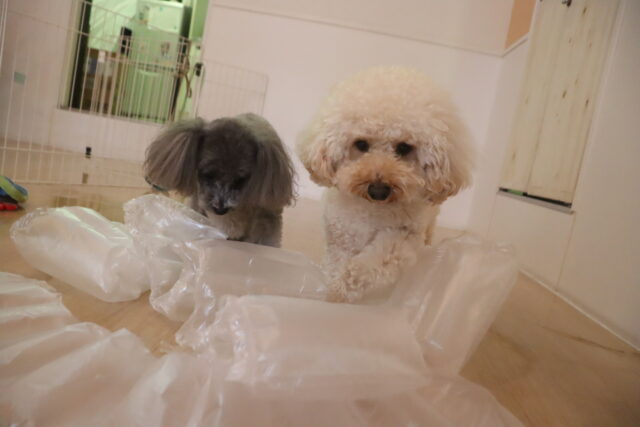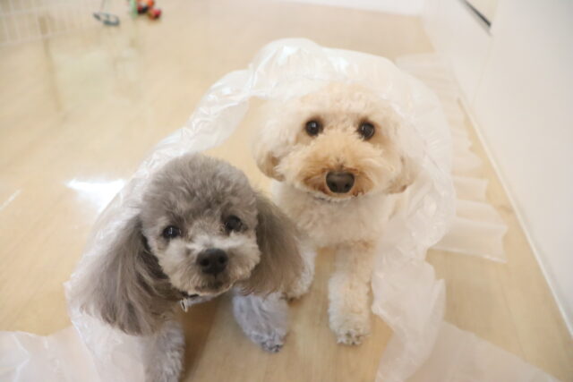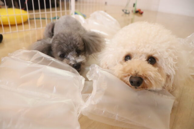 アンジュちゃんと晴くんは一緒にビニール慣れをしました!
