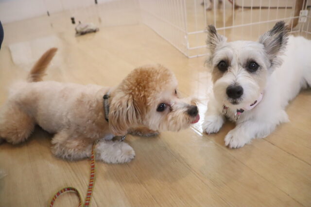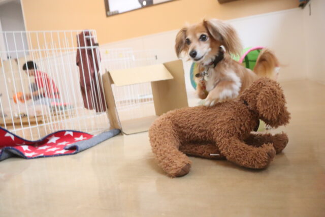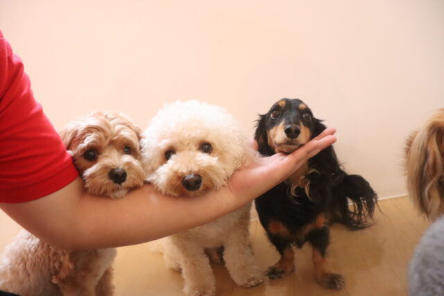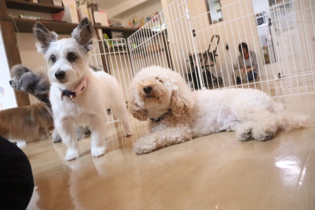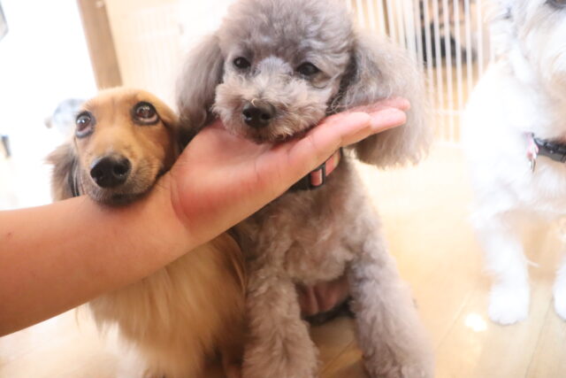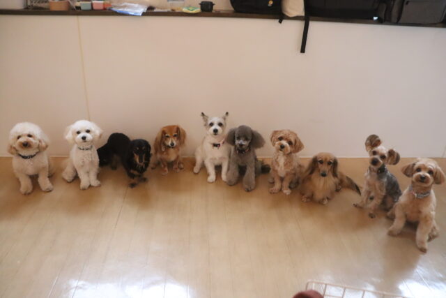 今日の保育園生は、ジャックラッセルテリアのソフィちゃん、トイプードルのアンジュちゃん、カニンヘンダックスフンドのここみちゃん・ラテちゃん、チワワ×ミニチュアダックスフンドのらいくん、マルチーズ×トイプードルのアリアちゃん・晴くん・陽向くん・アンディくん、ポメラニアン×トイプードルのエマちゃん、ヨークシャーテリアのノアくん、フレンチブルドッグのハイちゃんです!