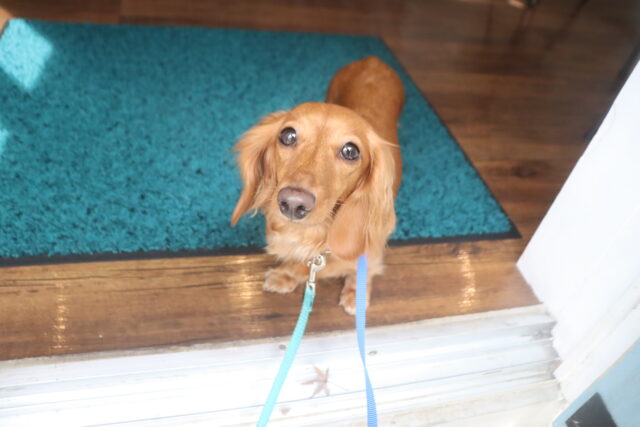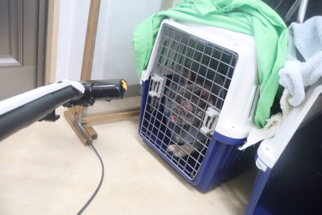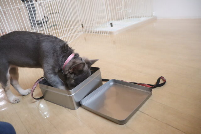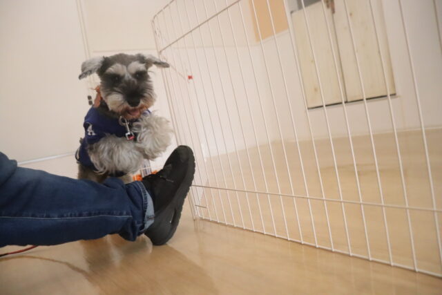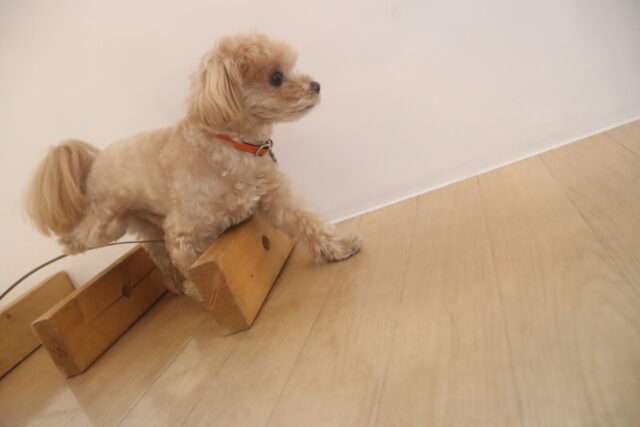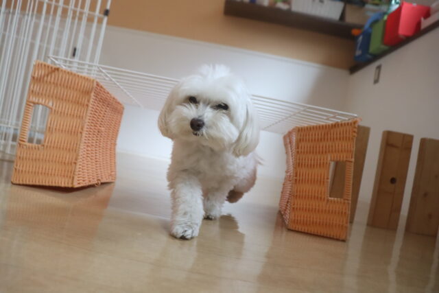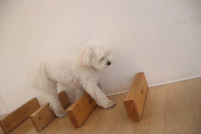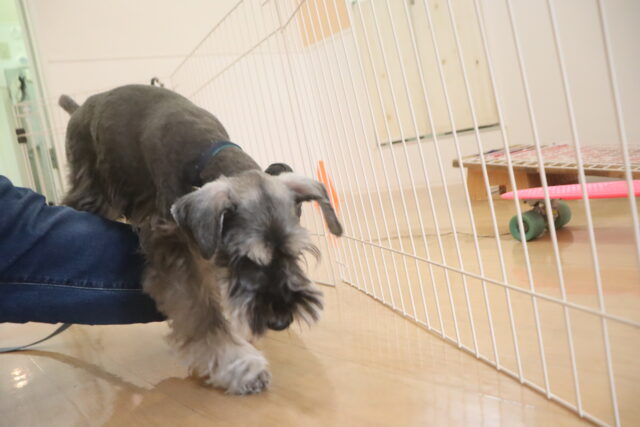 クオンくんはクレートのドアを使って”足場”慣れをしました!