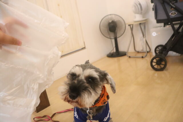 レイアちゃんはビニールの梱包材で”物”慣れ!