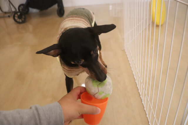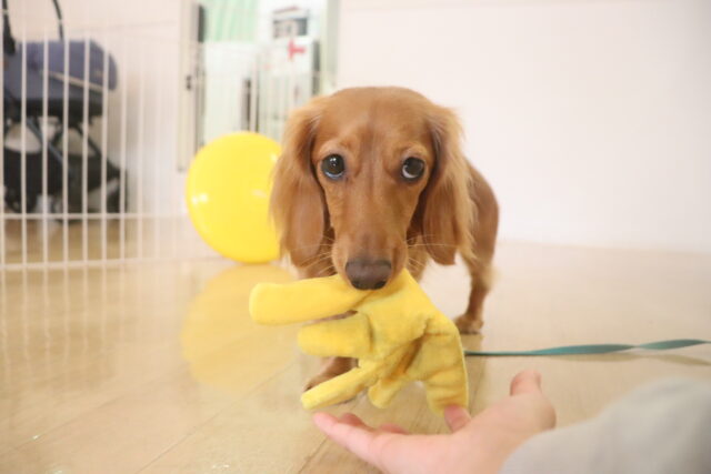 みるもちゃんは引き続きレトリーブの特訓を行っています!