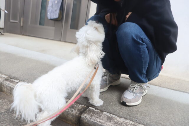 お外でいつもとは違う格好をしたスタッフと会い、嬉しいような怪しいような…微妙な反応でした(笑)
