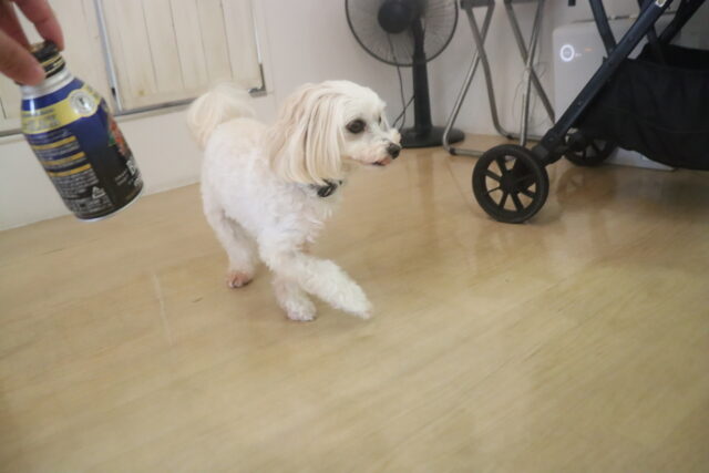 コインが入った缶を振って音を出すと、それは苦手なようで逃走するレアちゃんでした…(-_-;)