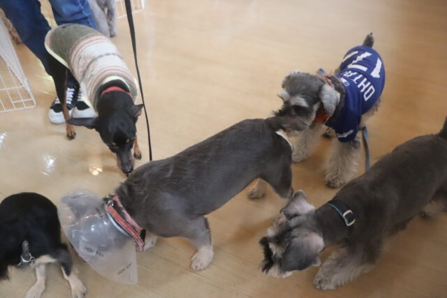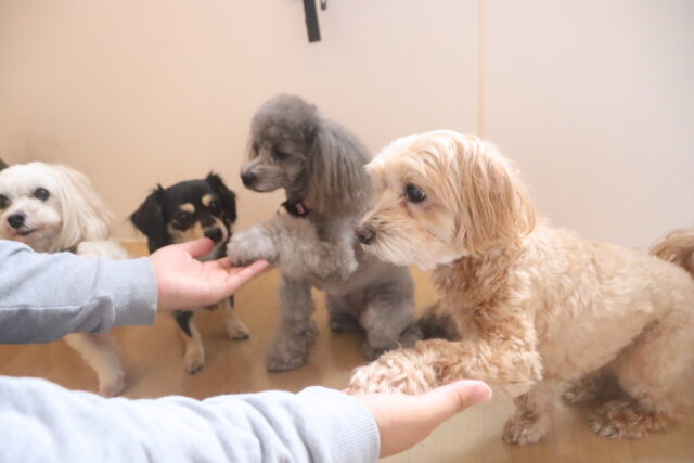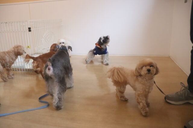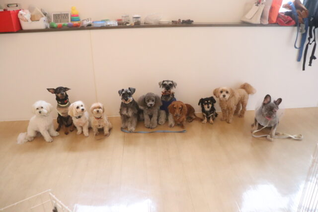 今日の保育園生は、ミニチュアシュナウザーのレイアちゃん・クオンくん、フレンチブルドッグのハイちゃん、チワワ×ミニチュアダックスフンドのこころちゃん、ミニチュアピンシャーのルアくん、ミニチュアダックスフンドのみるもちゃん、マルチーズ×トイプードルのゆずちゃん・レアちゃん・サンディちゃん・うるくん、トイプードルのアンジュちゃんです!