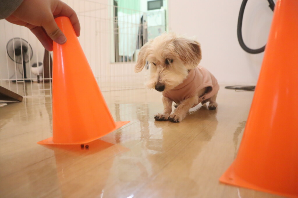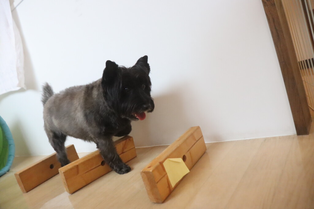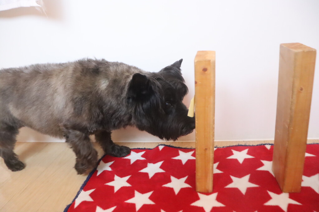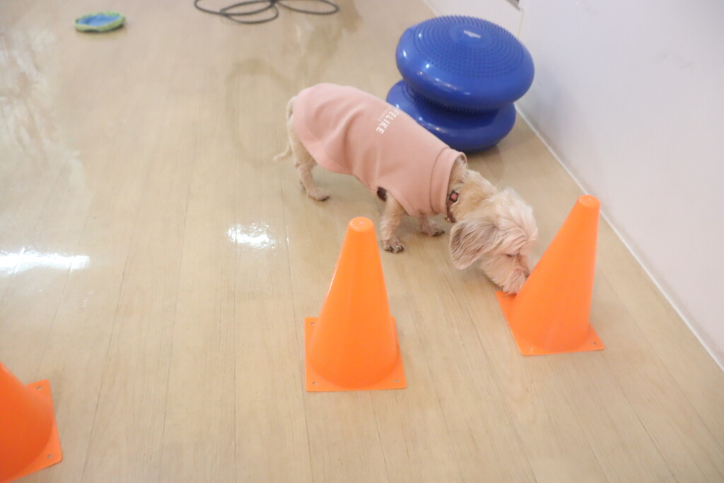 3つのコーンを順番に嗅いで、中に入っているフードを探します…💭