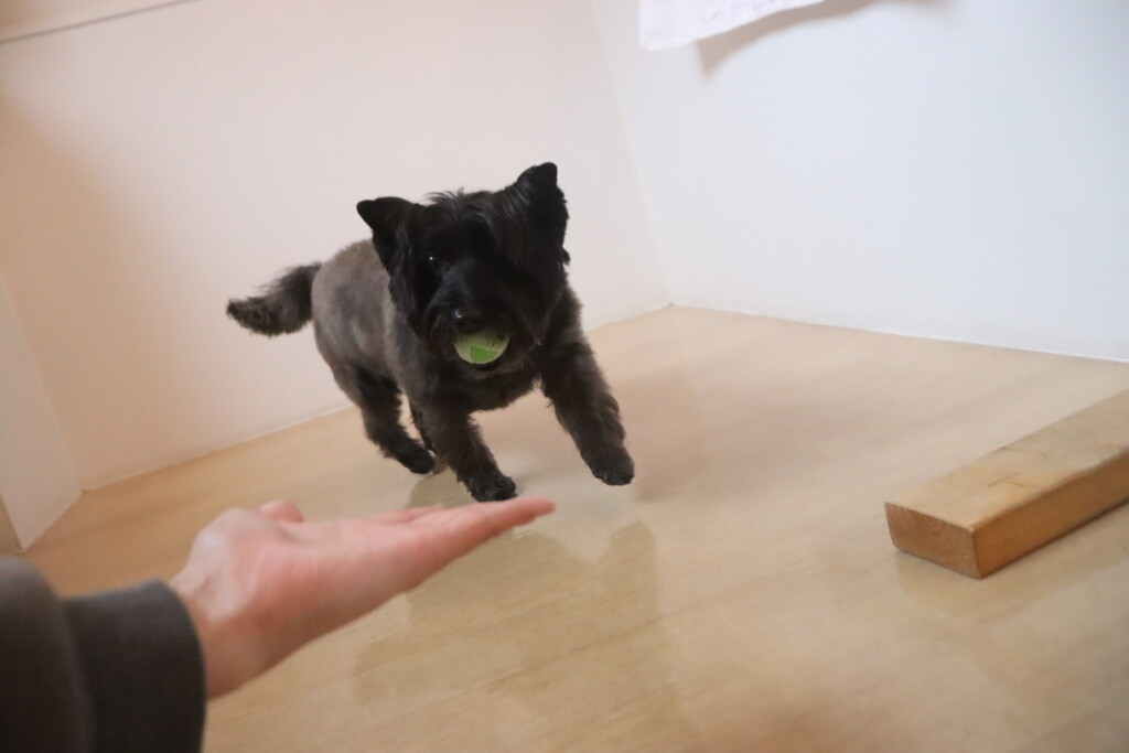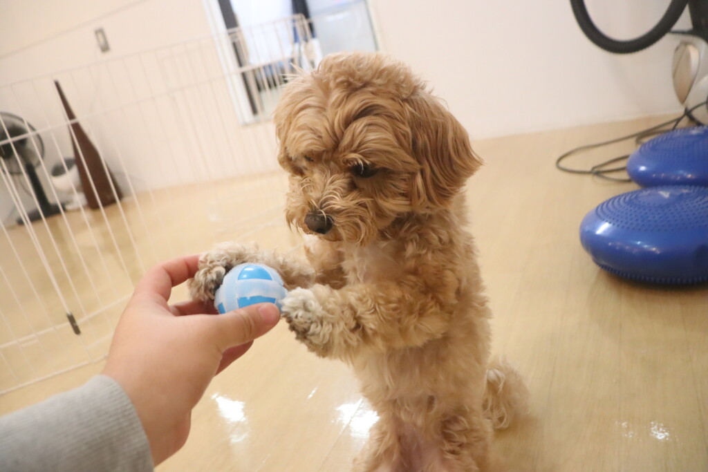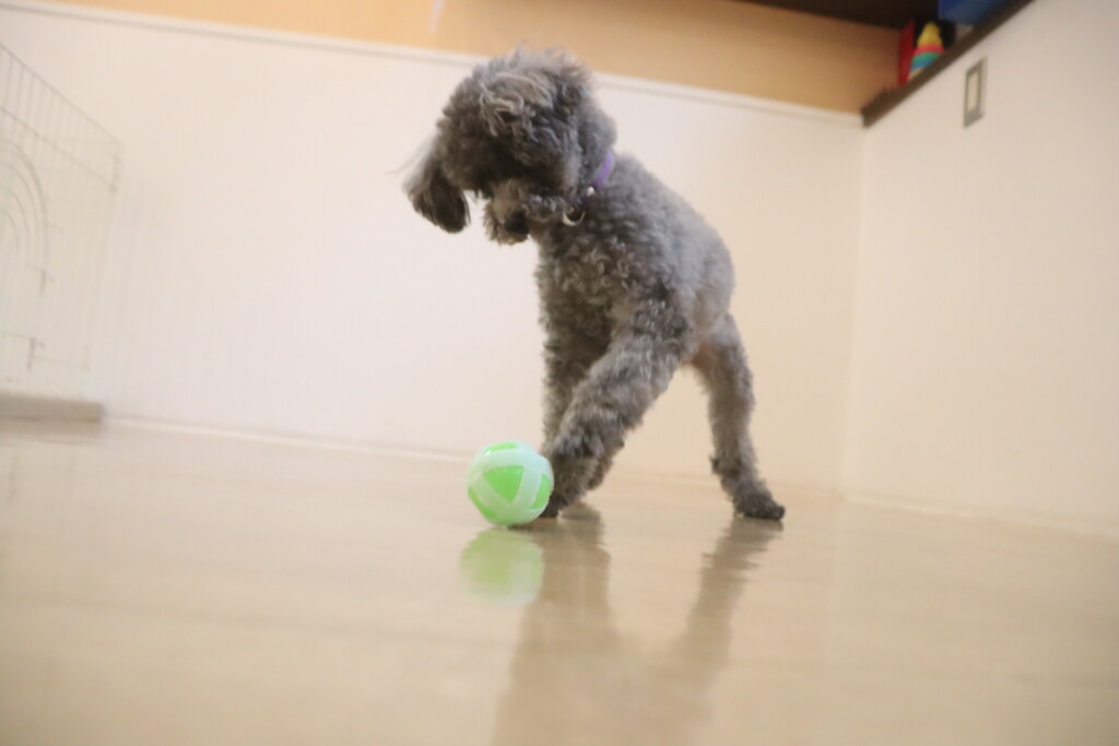 「このボールちょうだーい💕」と前足で掴んでいました🤭