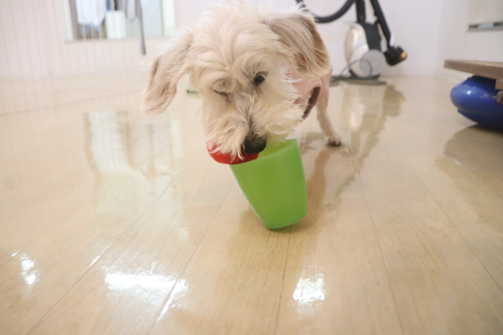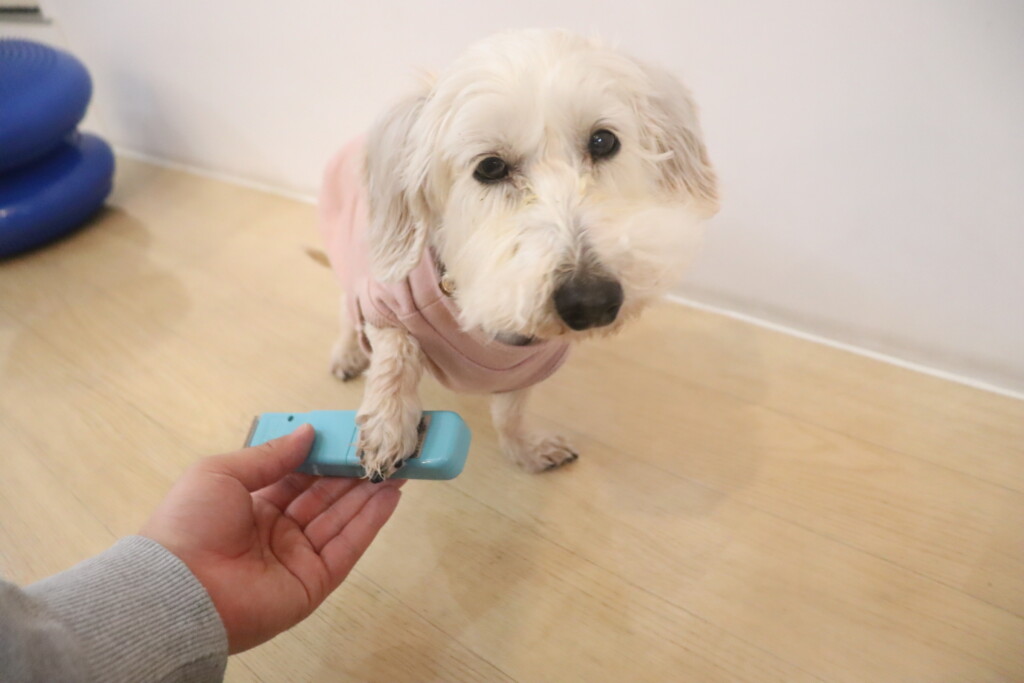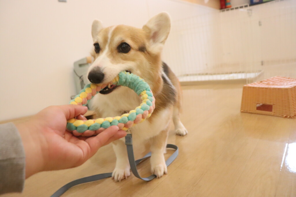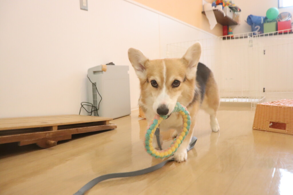 オモチャを咥えてスタッフの元までテクテク…🐾