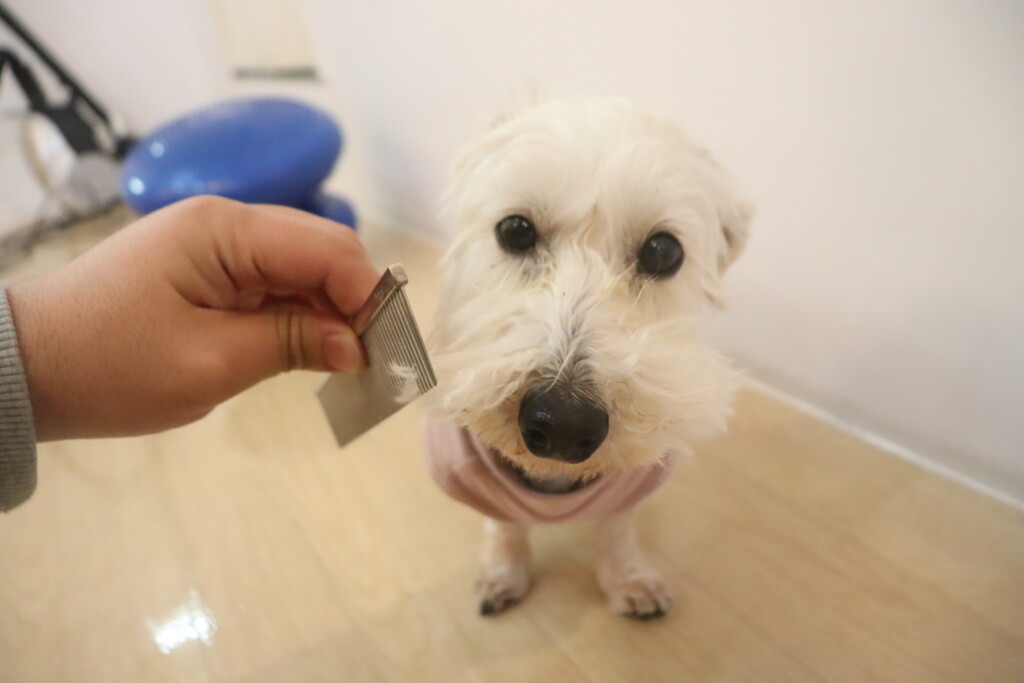 バリカン慣れではこんな表情になってしまう小梅ちゃん😂