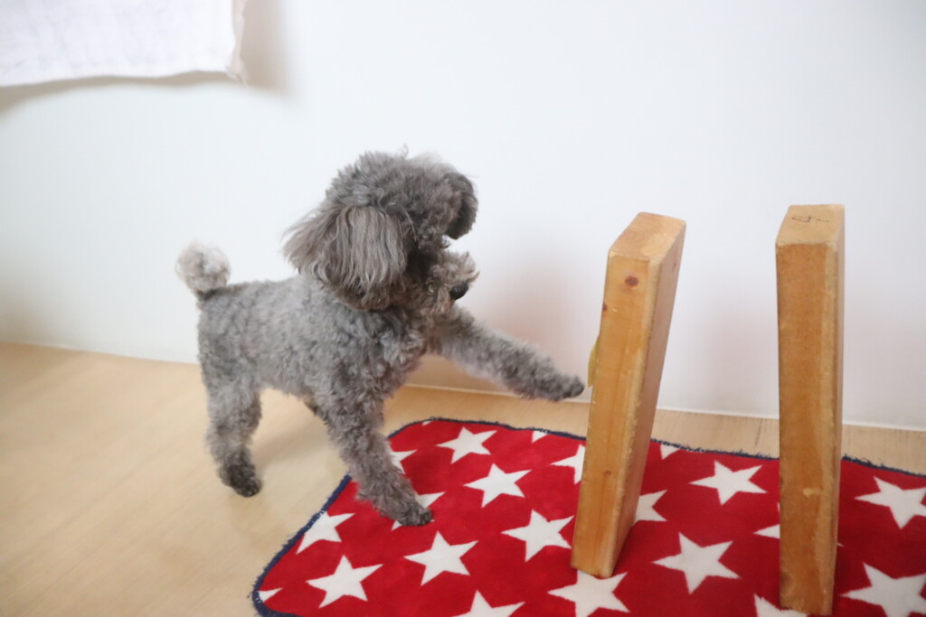 モモちゃんは”ドミノ倒し”の練習!