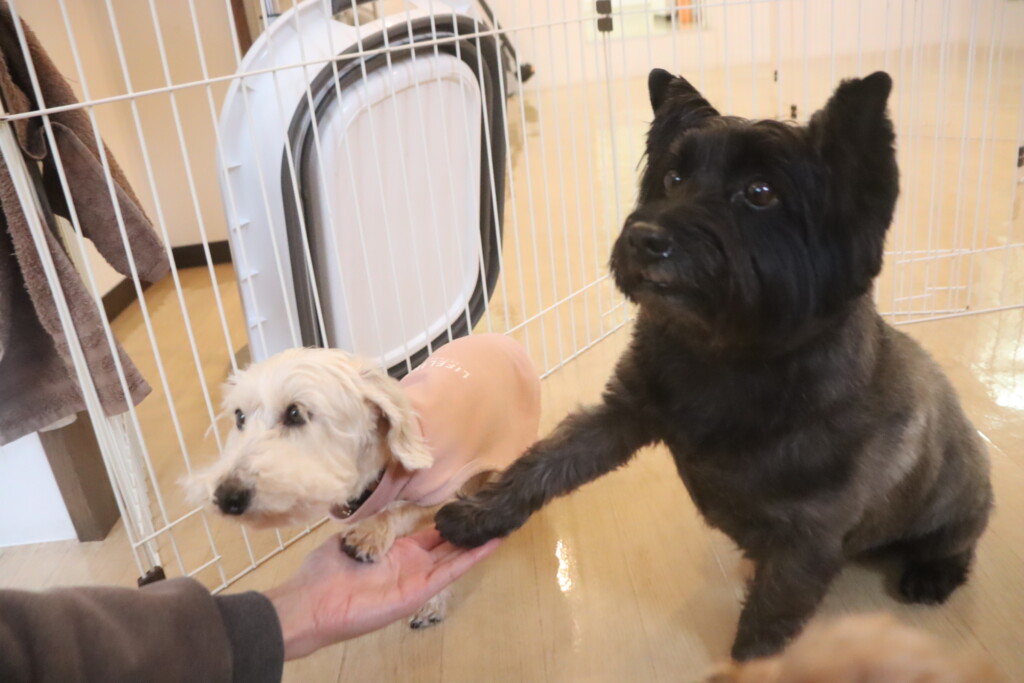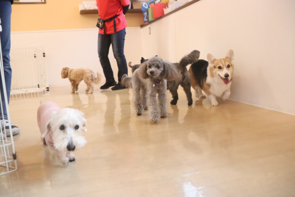 今日の保育園生は、ワイヤーヘアードミニチュアダックスフンドの小梅ちゃん、ケアーンテリアのノンちゃん、ウェルシュコーギーペンブロークのサクラちゃん、トイプードルのモモちゃん、マルチーズ×トイプードルのアリアちゃん・アンディくん、ポメラニアン×トイプードルのエマちゃんです!