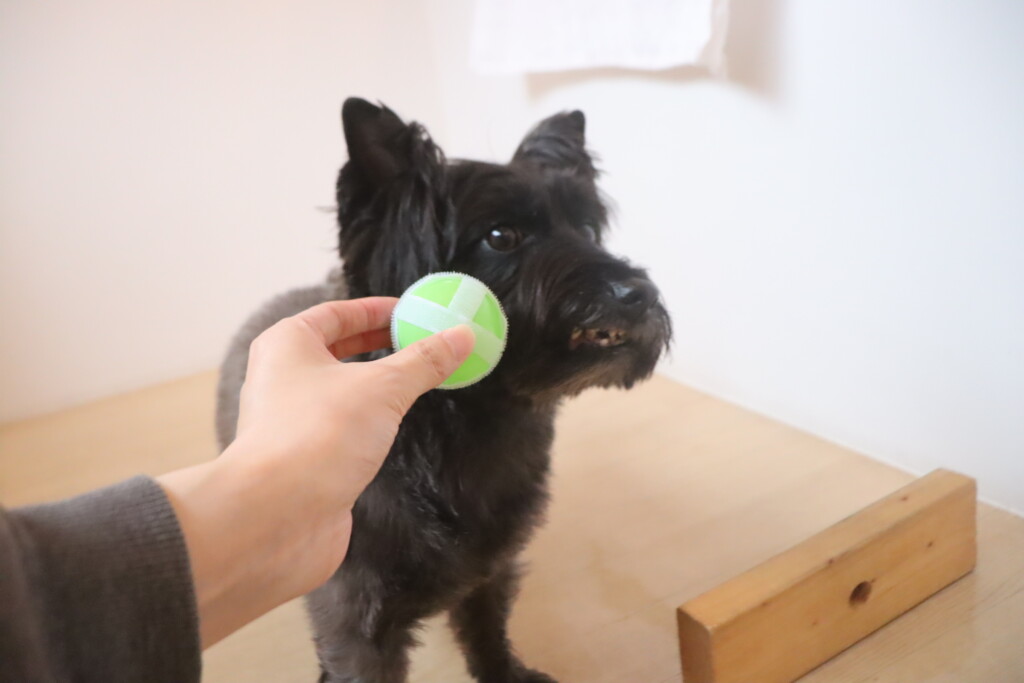 ノンちゃんはマジックテープがついたボールを近付けられるとこんな表情に…(笑)
