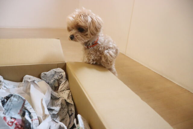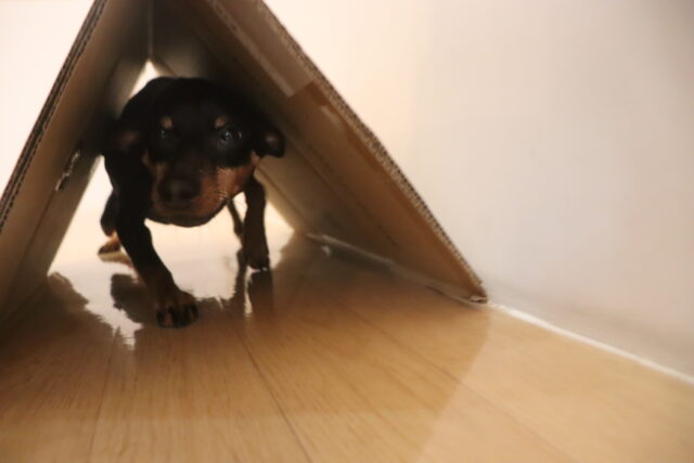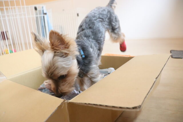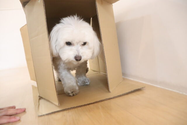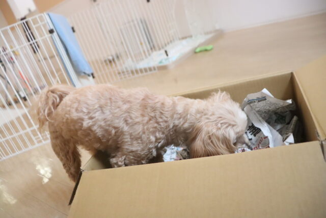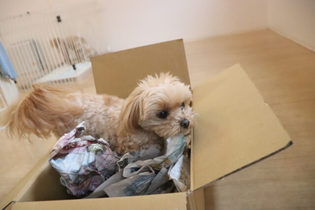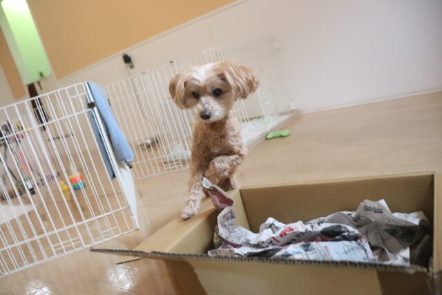 ルアくん、ラテちゃん、サクラちゃん、ゆずちゃん、サンディちゃん、ルイくん、うるくんはダンボールで物慣れを行いました!全頭反応が様々で面白かったです🤭苦手な子も最後まで取り組んでくれましたよ👏