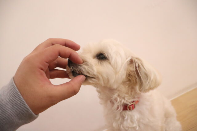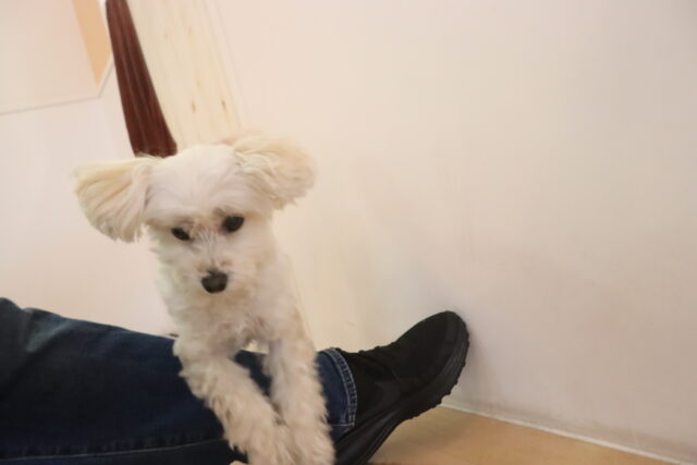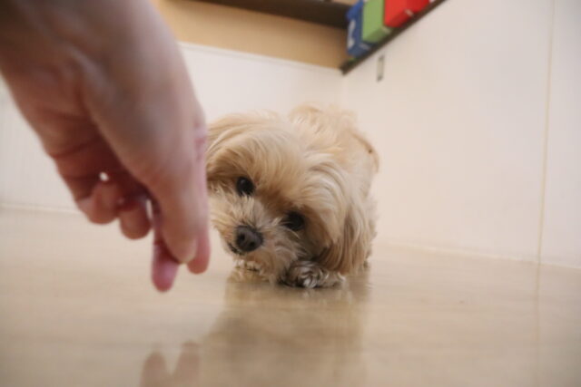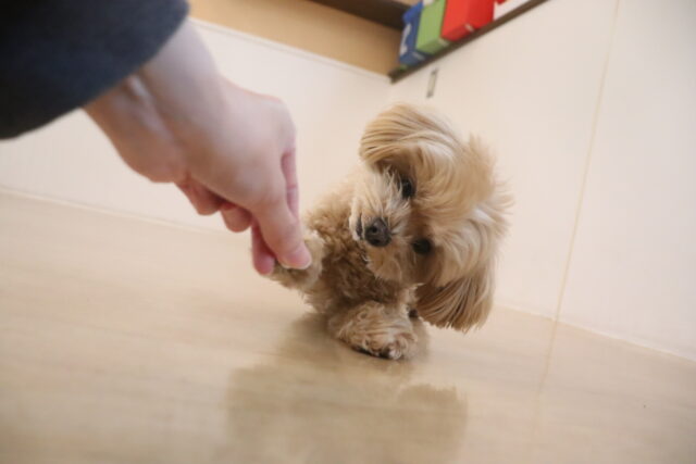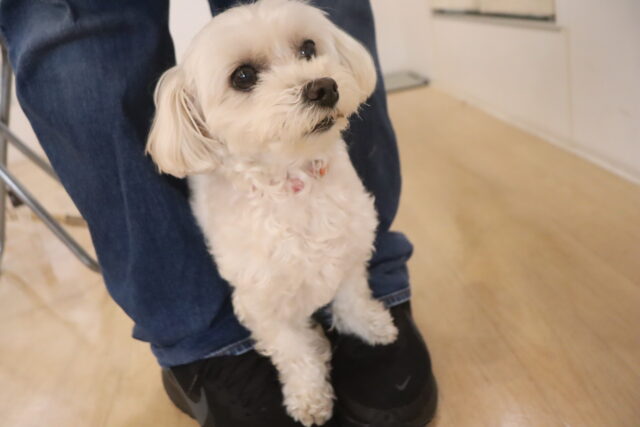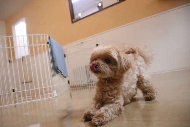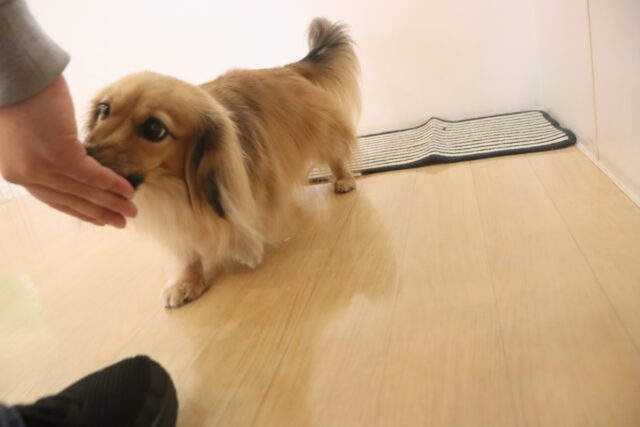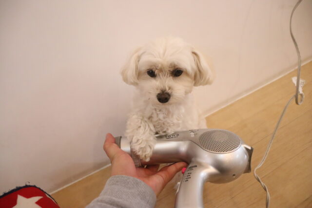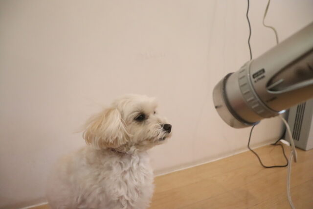 ドライヤー慣れでは、風を当てられテンションが下がり気味なきなこちゃんでしたが、その場からは動くことなく取り組んでくれました💮