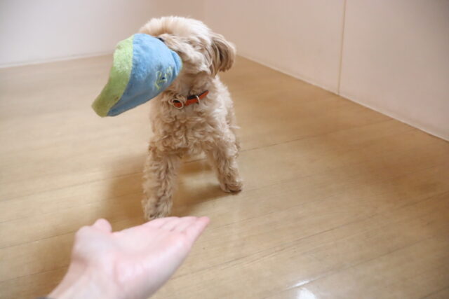 サンディちゃんはレトリーブ練習を行いました♪やる気が空回りしておもちゃを見失ってしまうサンディちゃん💦