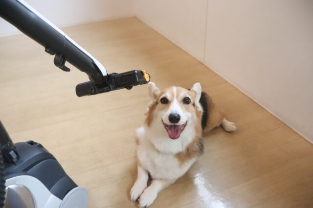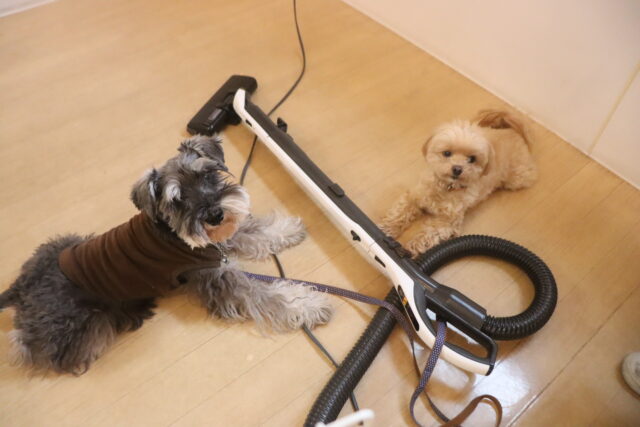 クオンくんと一緒に掃除機慣れをしました!掃除機が苦手なようで距離を取るクオンくんとうるくん💦