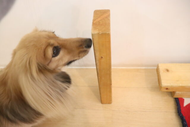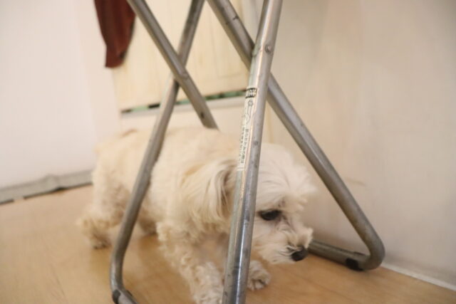 きなこちゃんは椅子で物慣れを行いました!「通れるかな~💦」と心配そうなきなこちゃん…