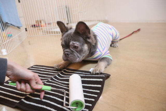 ハイちゃんはコロコロ慣れを行いました!見慣れないものに不思議そうな様子のハイちゃん🤔