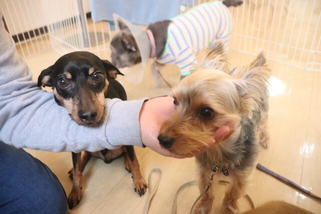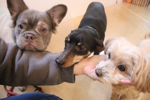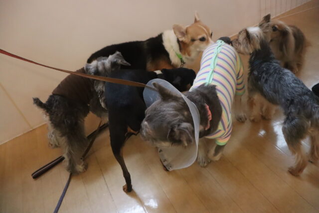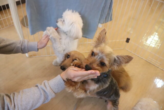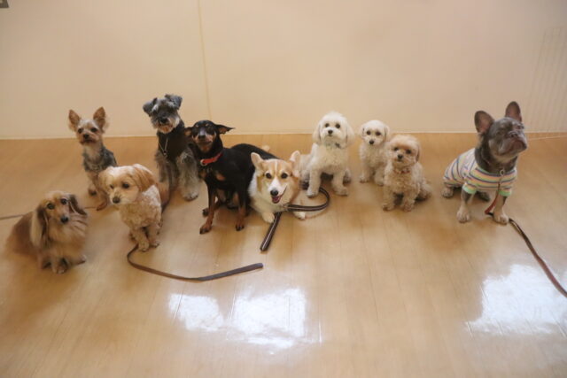 今日の保育園生は、マルチーズ×トイプードルのうるくんときなこちゃんとゆずちゃんとサンディちゃん、ヨークシャーテリアのルイくん、ウェルシュコーギーペンブロークのサクラちゃん、フレンチブルドッグのハイちゃん、カニンヘンダックスフンドのラテちゃん、ミニチュアシュナウザーのクオンくん、ミニチュアピンシャーのルアくんです!