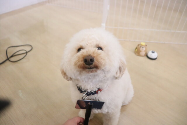 トリミング台は前回より少し余裕が出てきたのでブラッシング練習も行いました!