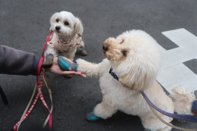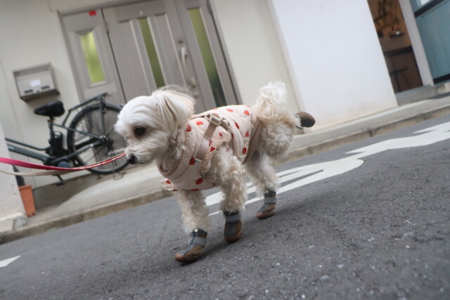 それぞれ足元の違和感に戸惑いつつも、お散歩では頑張って歩いてくれました🐾