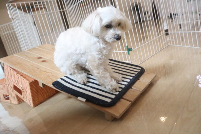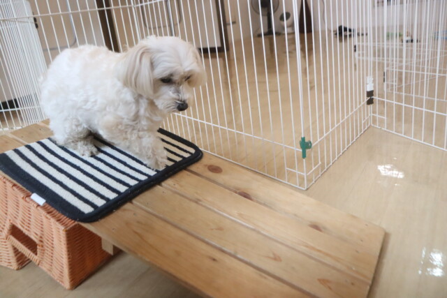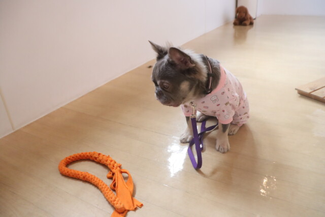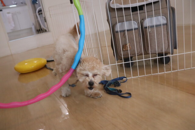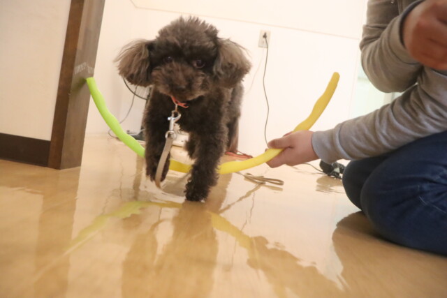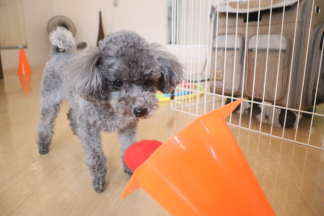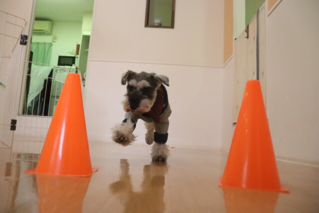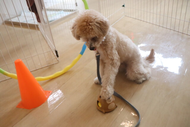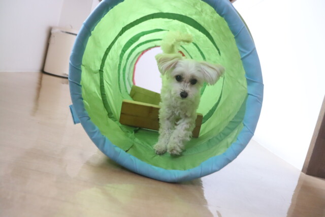 板を置いたトンネルはなかなかくぐることが出来ませんでしたが、小梅ちゃんがお手本を見せてくれるとすぐにくぐり抜けられるようになりました!しっかりと見てお勉強出来て偉かったね✐