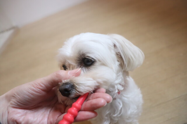 苦手なお手入れ練習では表情が曇りやすいですが頑張ってくれています!