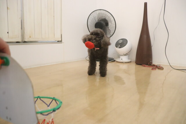 ノンちゃんはバスケットシュートの練習!