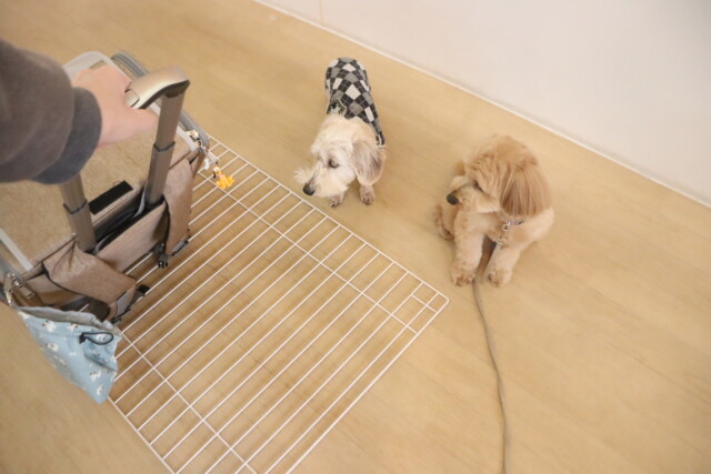 ノンちゃん、レイアちゃん、小梅ちゃん、エマちゃん、らいくん、モモちゃんはキャリーケースで物慣れをしました!
