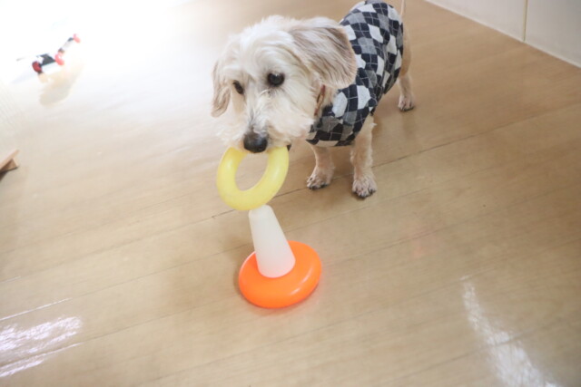 レイアちゃんはコーンを使って宝探しの練習もしたね!