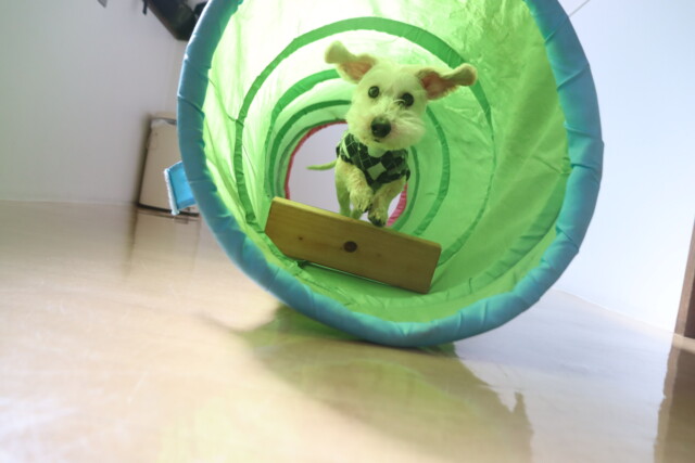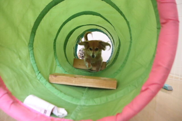 トンネルくぐりは中に障害物を置いてもピョンピョン跳びながら楽しく取り組んでくれた小梅ちゃん\(^o^)/