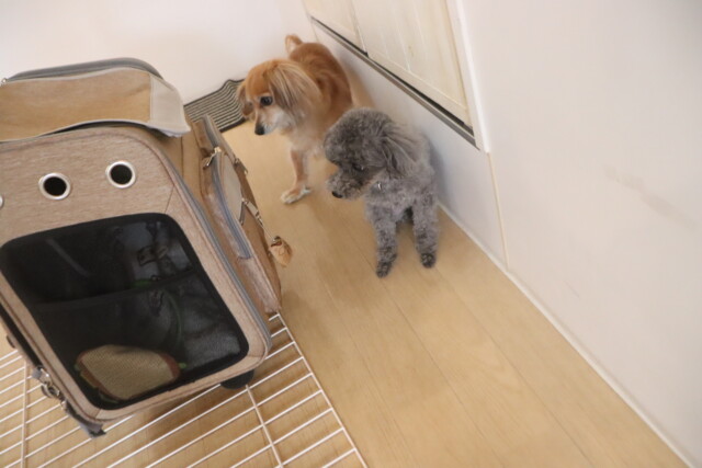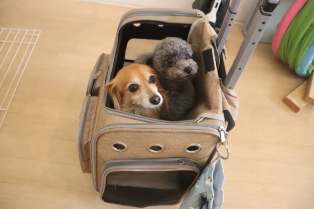 小柄な2頭は一緒にキャリーの試乗もしてみました🛒
