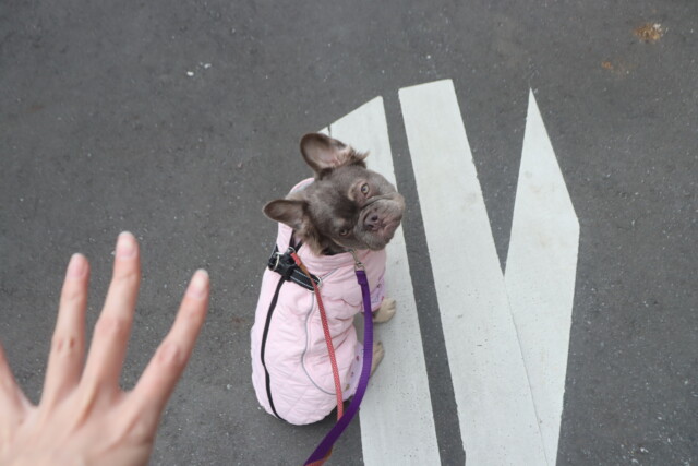 室内と違い刺激が多い分集中も途切れやすいですが、慣れたお店の前ではしっかりと待てていました!