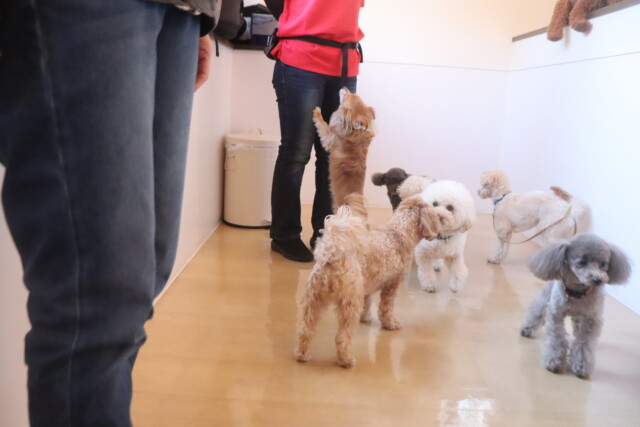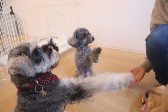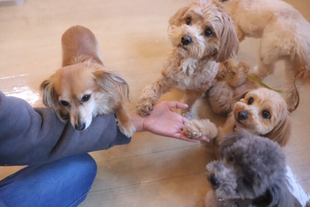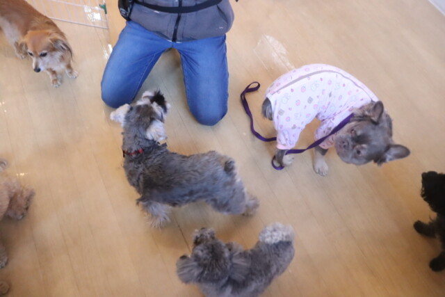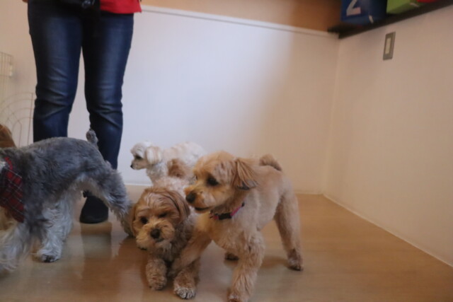 今日の保育園生は、マルチーズ×トイプードルのきなこちゃん・晴くん・アリアちゃん・アンディくん、ミニチュアシュナウザーのレイアちゃん、ケアーンテリアのノンちゃん、ポメラニアン×トイプードルのエマちゃん、ワイヤーヘアードミニチュアダックスフンドの小梅ちゃん、チワワ×ミニチュアダックスフンドのらいくん、トイプードルのアンジュちゃん・モモちゃん・ココちゃん、フレンチブルドッグのハイちゃんです!