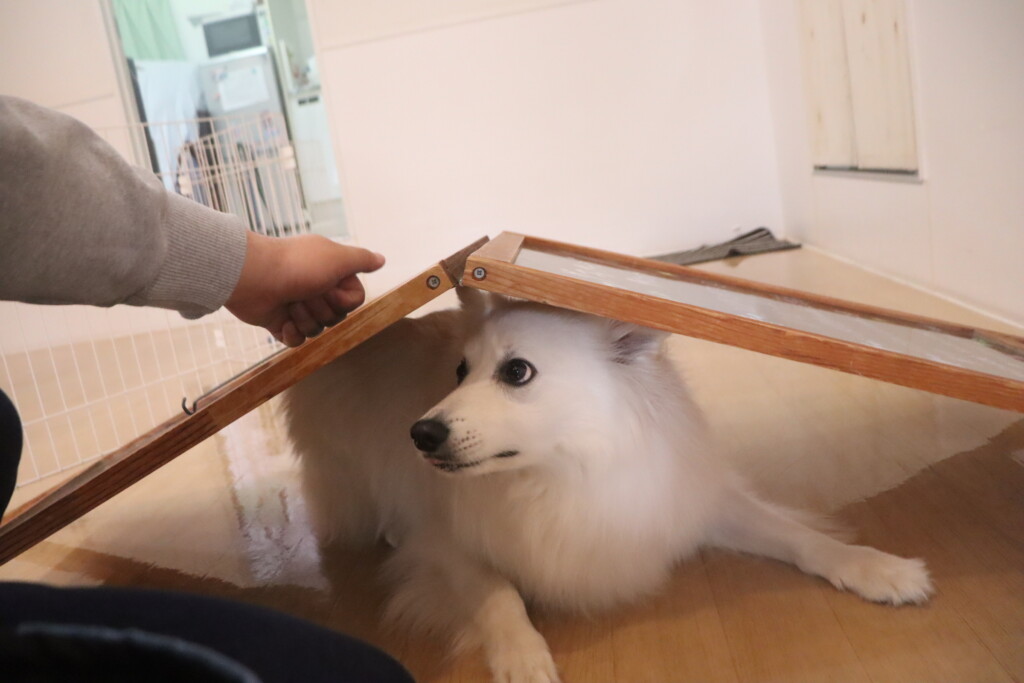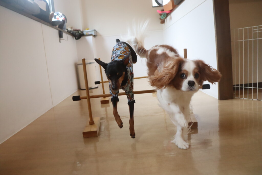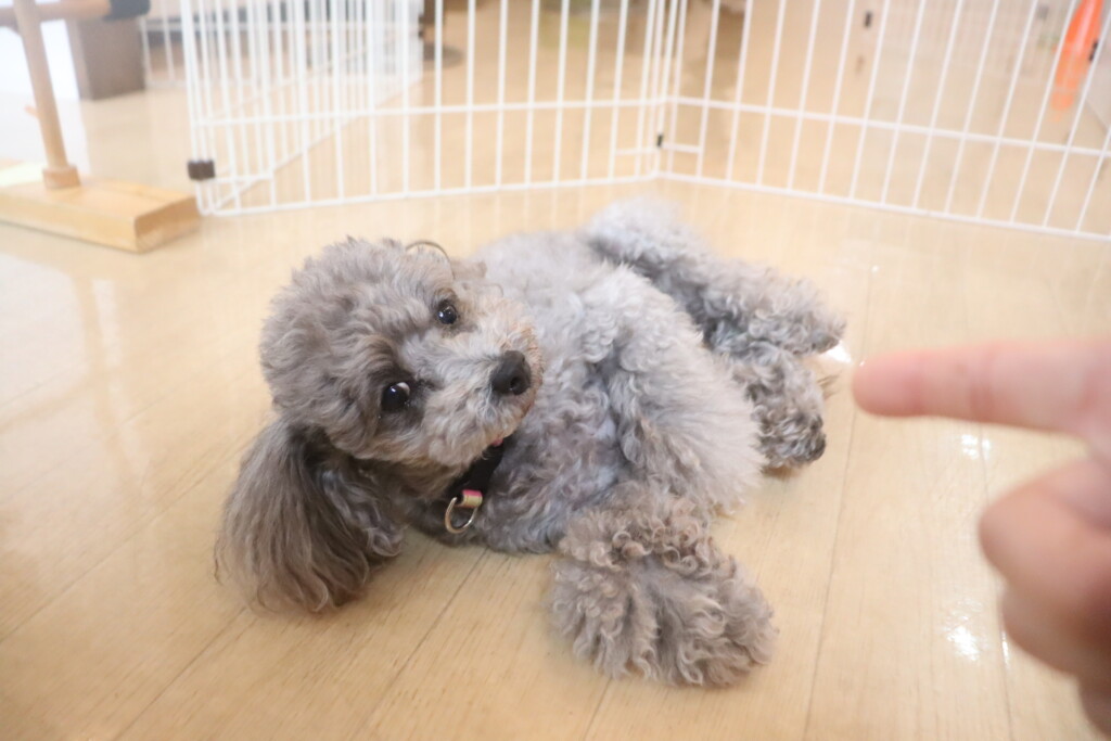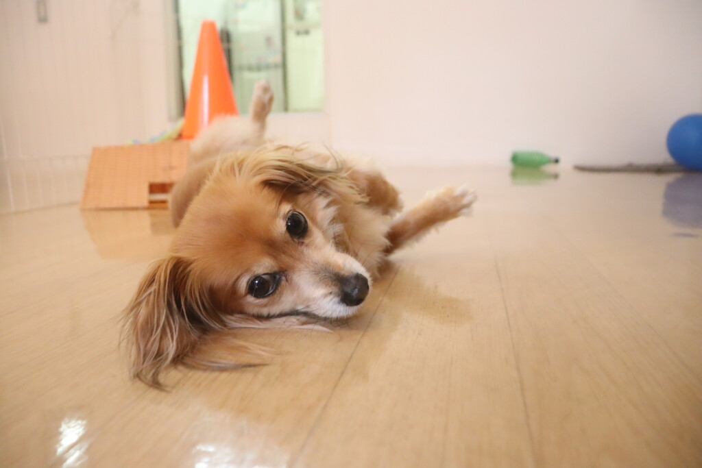 練習中のバーンも習得まであと一息!今日は始めから「バーン!」というと倒れてくれましたよ🤩