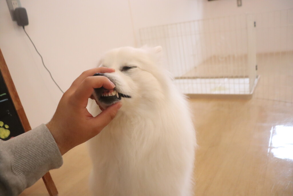 お鼻が曲がってしまう程やる気満々で全力タッチをしてくれるのですが、