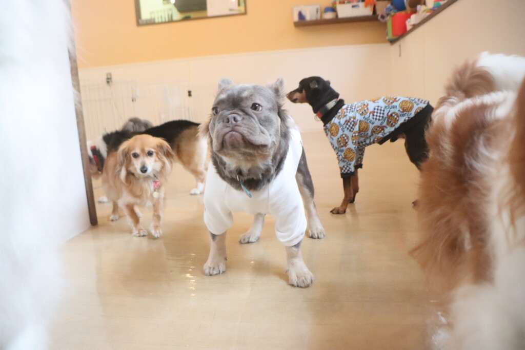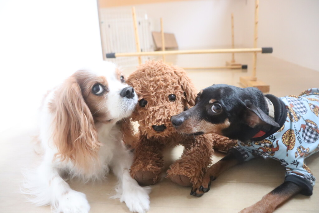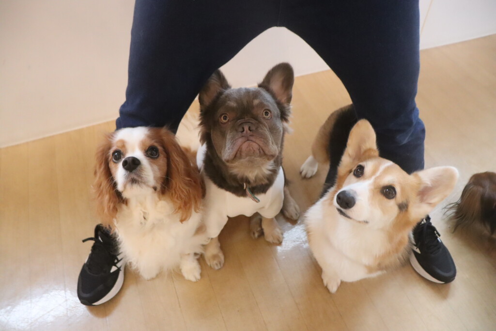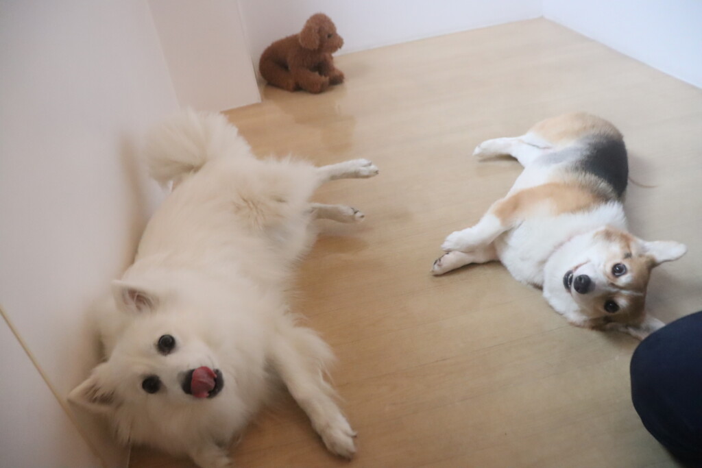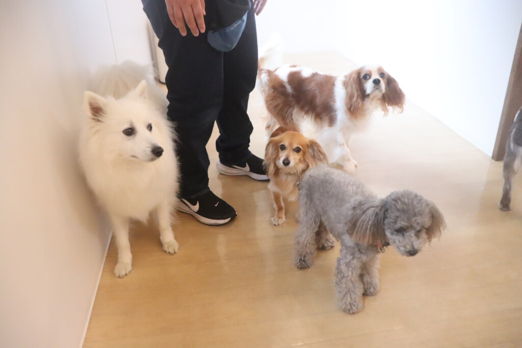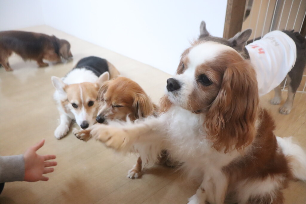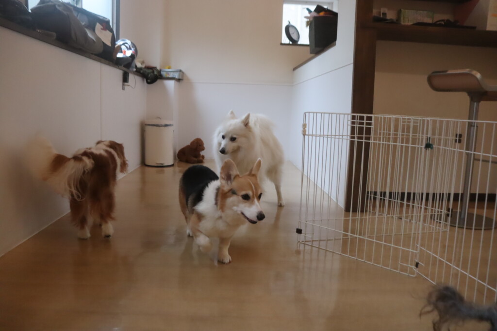 今日の保育園生は、日本スピッツのパブロンくん、ミニチュアピンシャーのルアくん、ウェルシュコーギーペンブロークのサクラちゃん、キャバリアキングチャールズスパニエルの茶々丸くん、チワワ×ミニチュアダックスフンドのらいくん、フレンチブルドッグのハイちゃん、トイプードルのアンジュちゃんです!