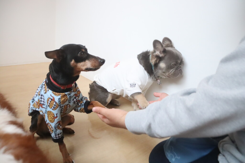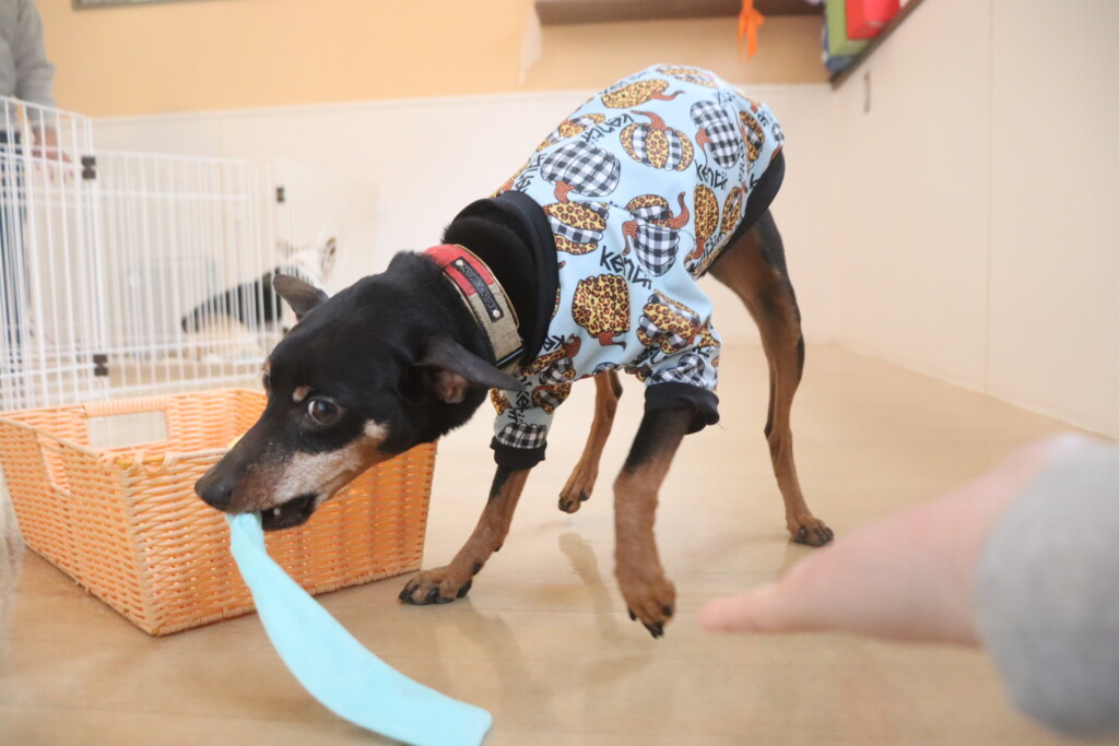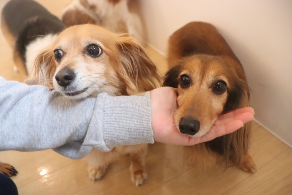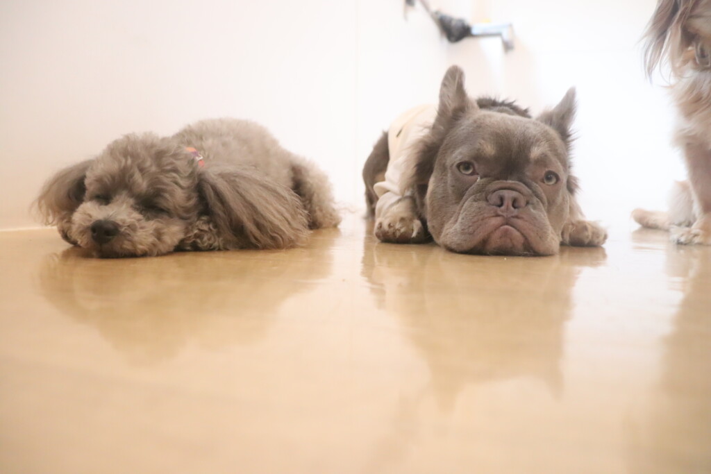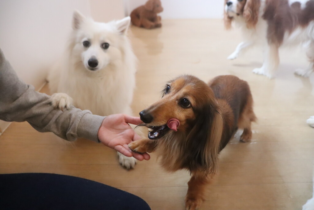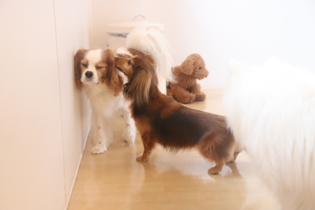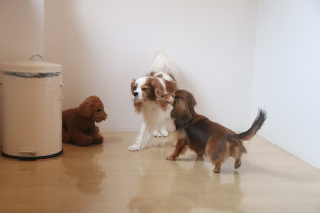 今日の保育園生は、日本スピッツのパブロンくん、ミニチュアピンシャーのルアくん、ウェルシュコーギーペンブロークのサクラちゃん、キャバリアキングチャールズスパニエルの茶々丸くん、チワワ×ミニチュアダックスフンドのらいくん、フレンチブルドッグのハイちゃん、トイプードルのアンジュちゃんです!