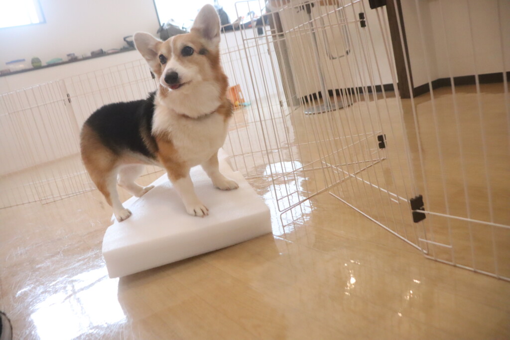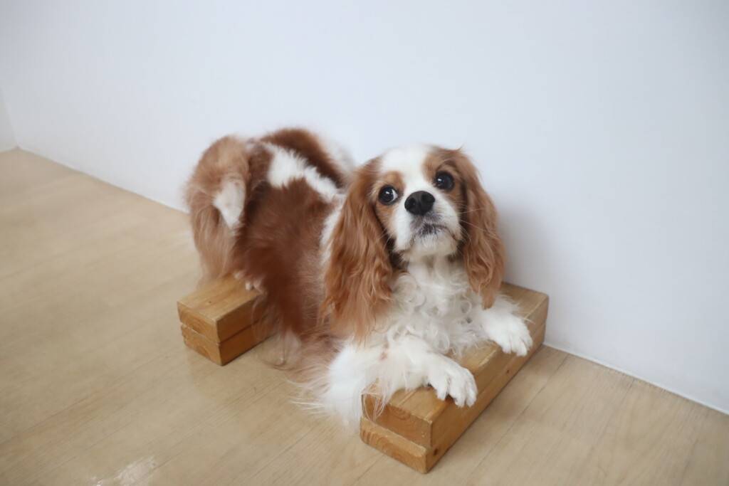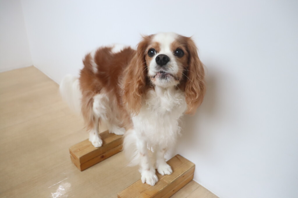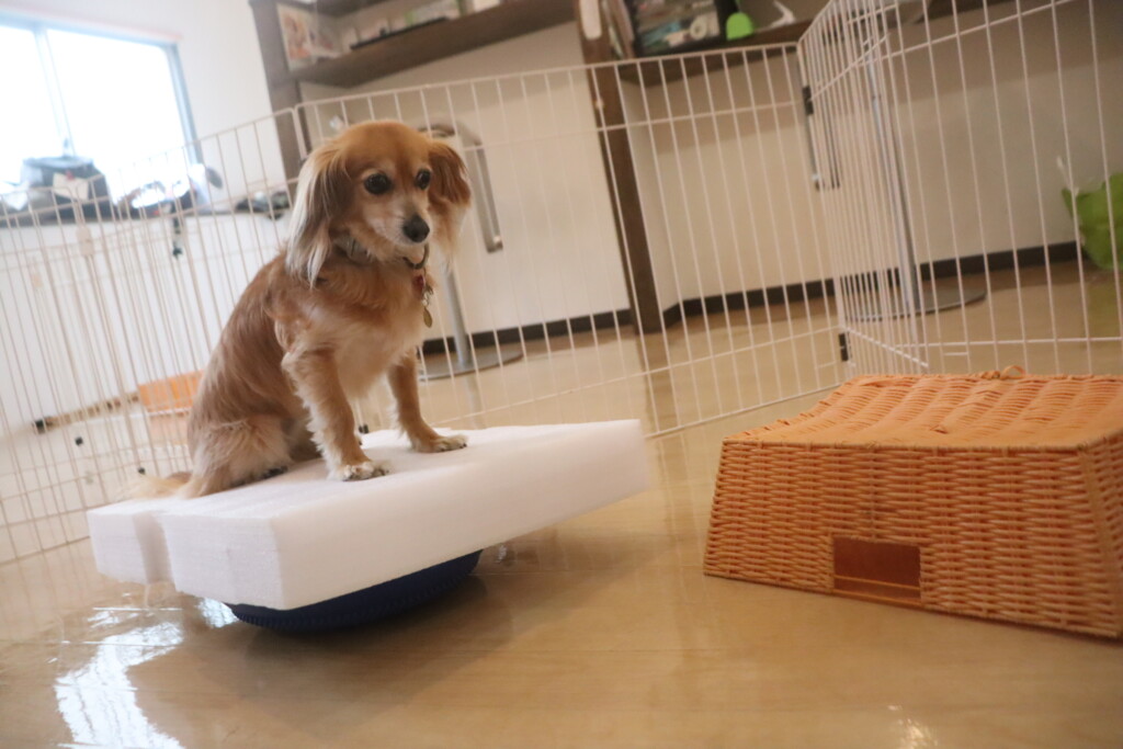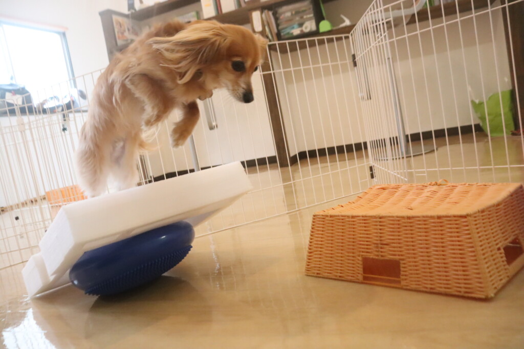 4つの足をそれぞれ板に乗せたまま器用にフセをしてくれた茶々丸くん💪