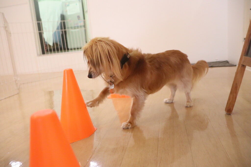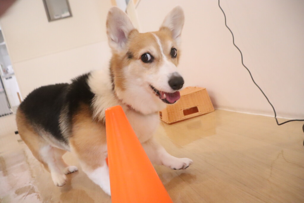 倒すゲームだと思ったのか突然コーンをツンツン☝♪