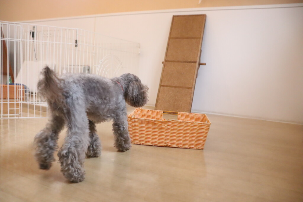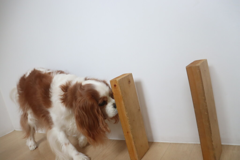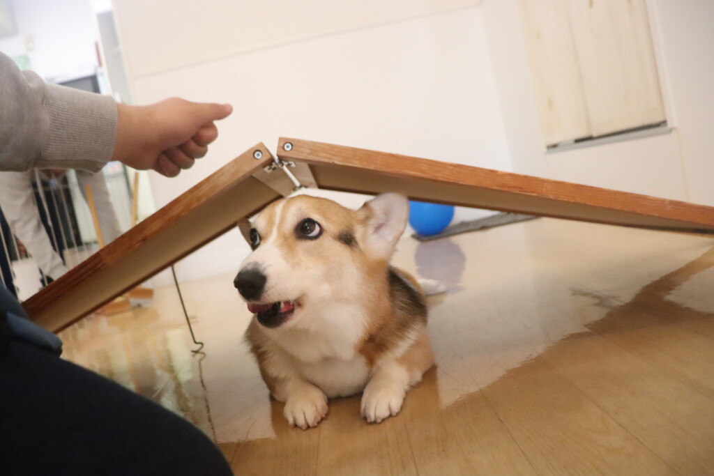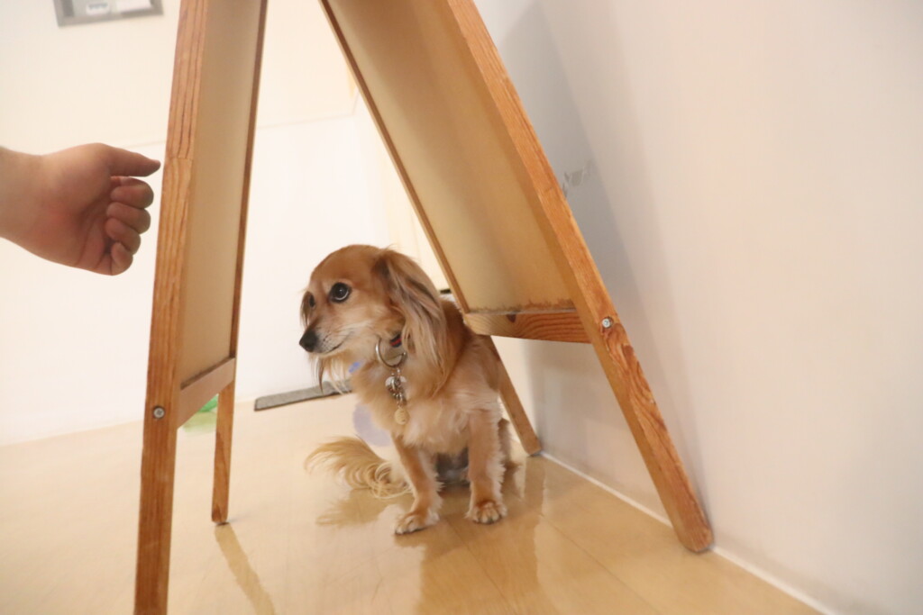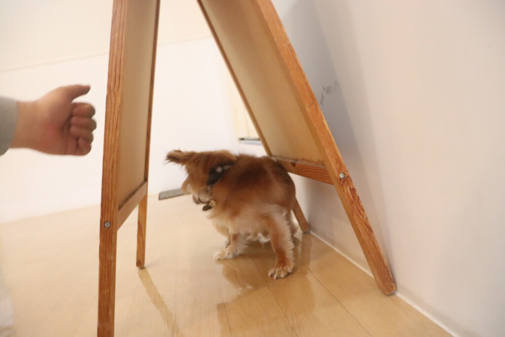 パブロンくん、サクラちゃん、らいくんは看板を使って物・音慣れをしました!