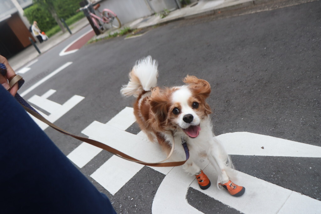 アンジュちゃんは靴を履いてお散歩へ!