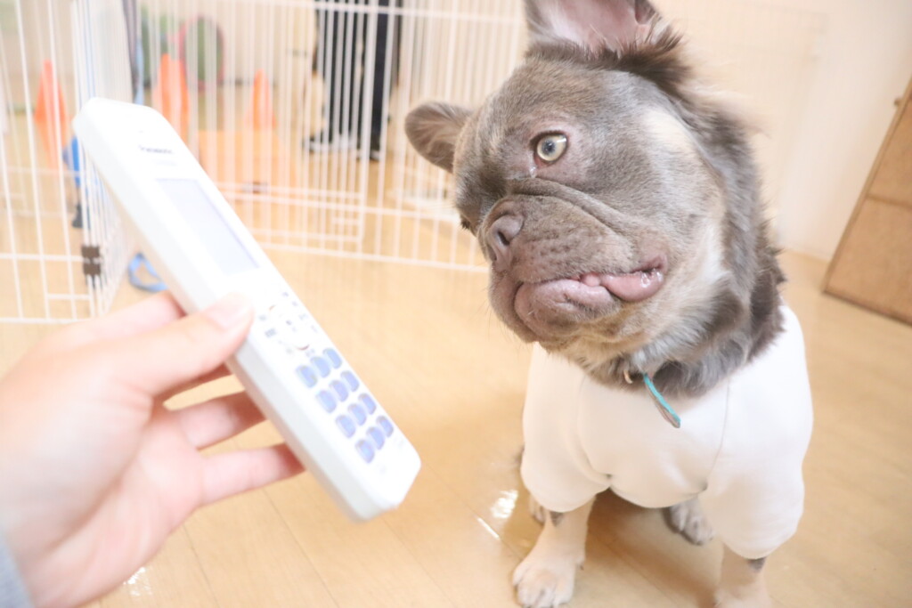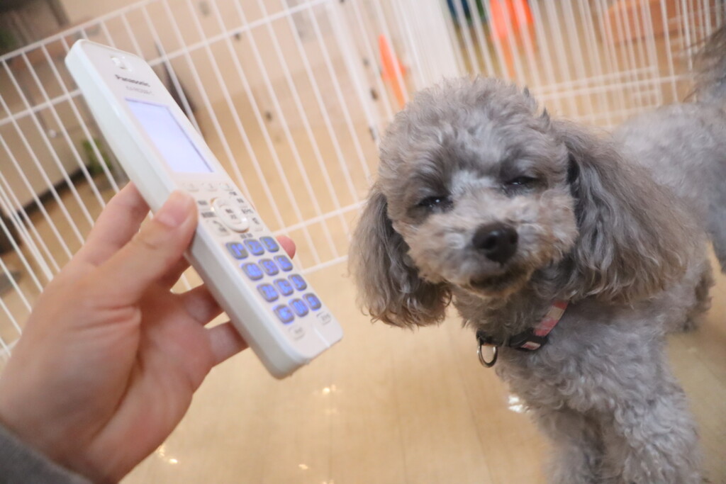 ハイちゃん、アンジュちゃんは電話の子機を使って音慣れをしています!