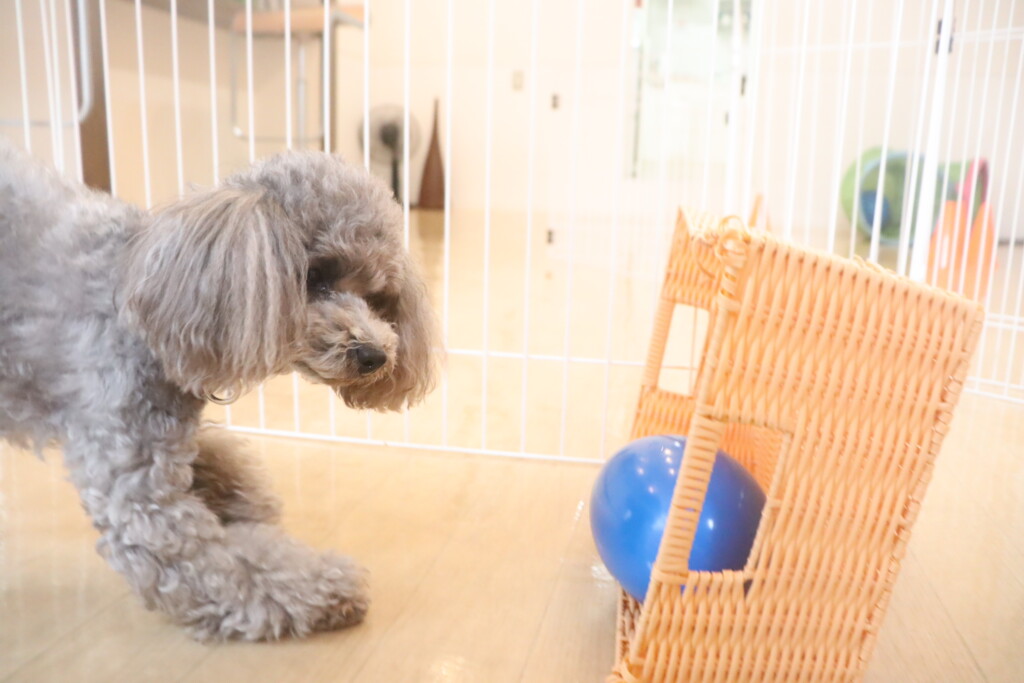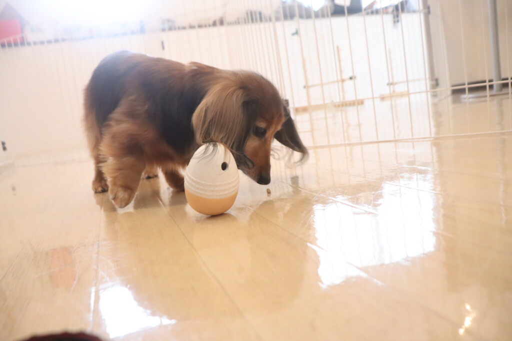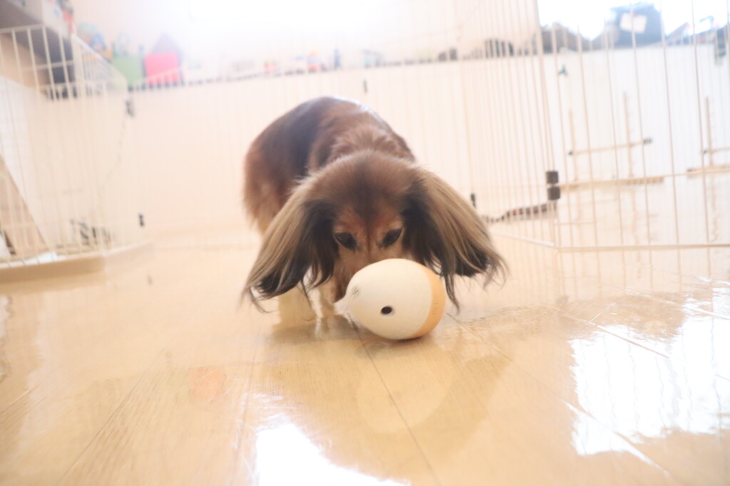 知育玩具も気に入ったようで一生懸命転がしてフードをGET するアーモンドくん!(^^)!