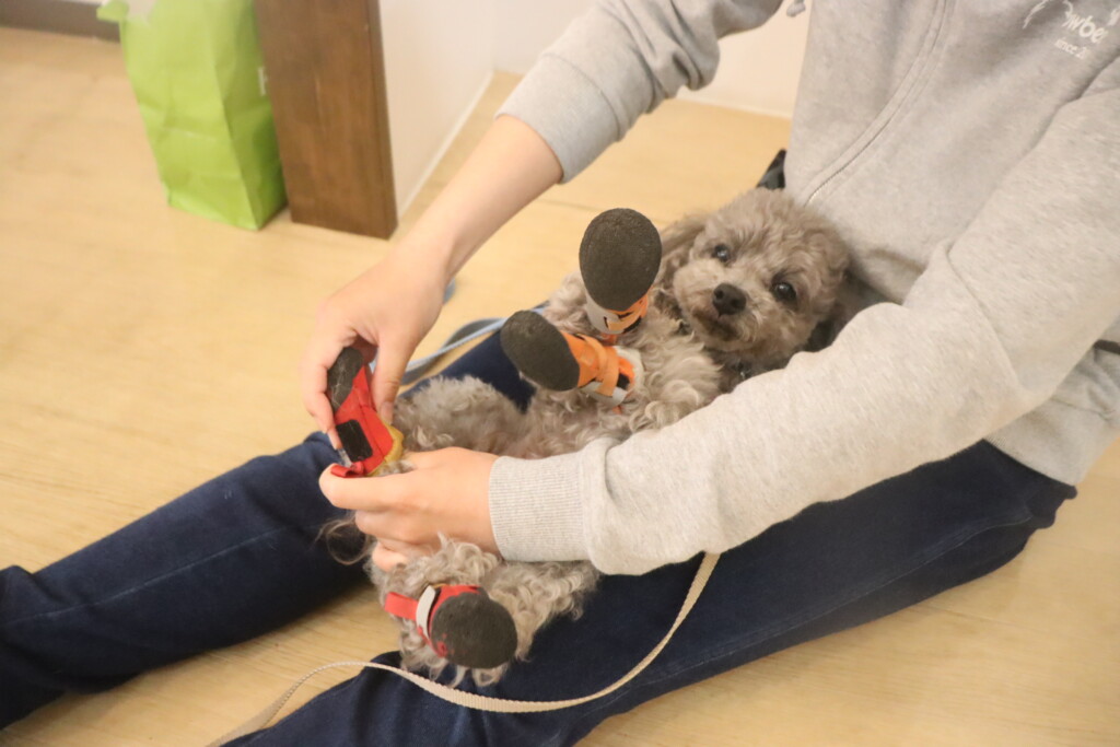 靴を履いて過ごす練習もしています!