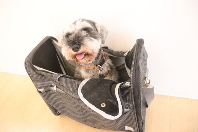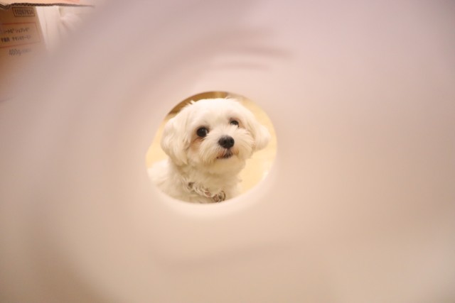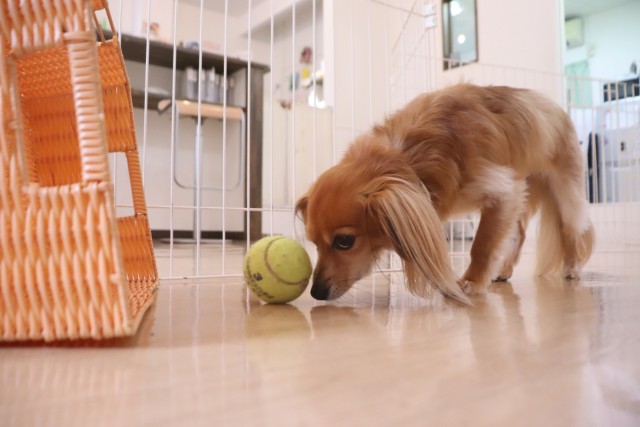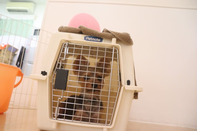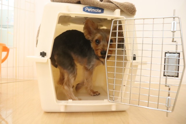 ルイくんはクレート内で落ち着いて過ごす練習をしています!